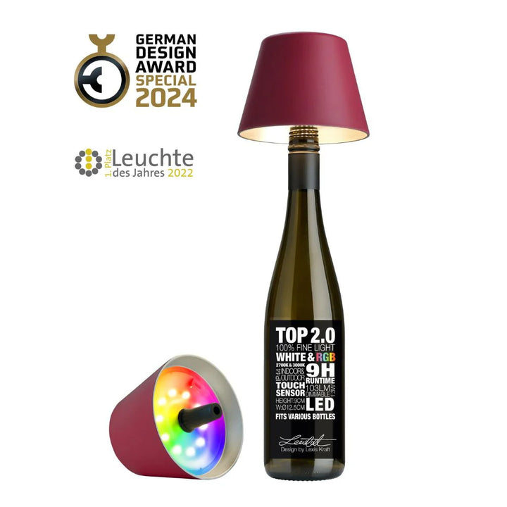 سمبكس، مصباح طاولة لزجاجة توب 2.0 (تشطيب غير لامع)، بوردو