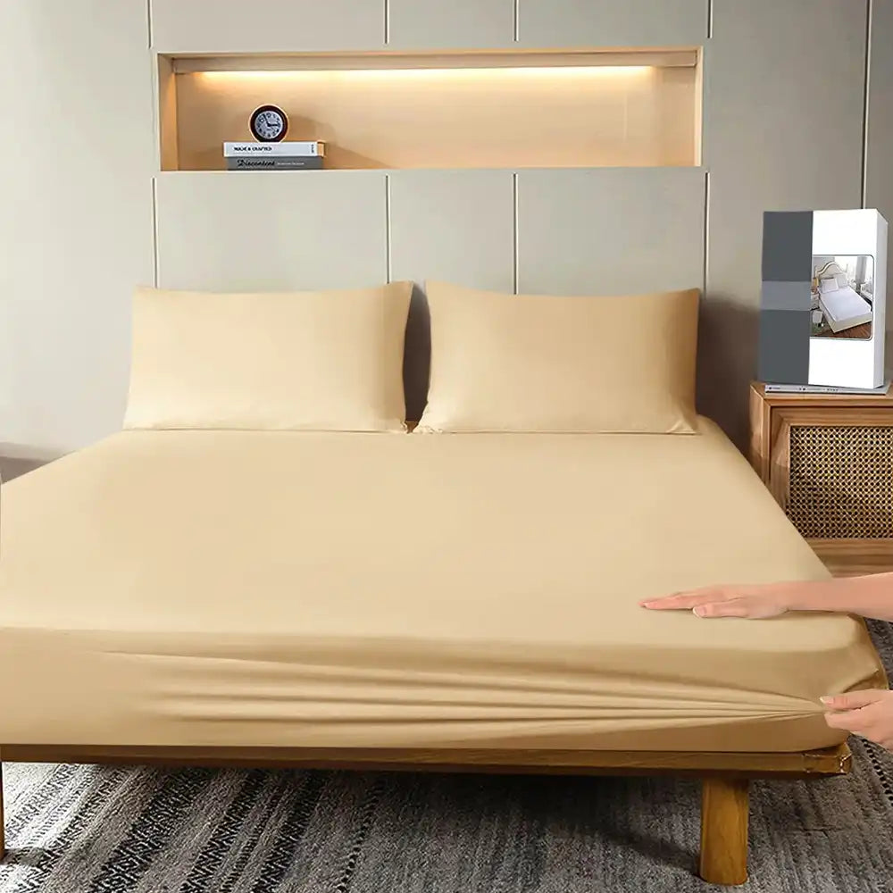 THS Giza Cotton Single XL Fitted Bed Sheet Beige