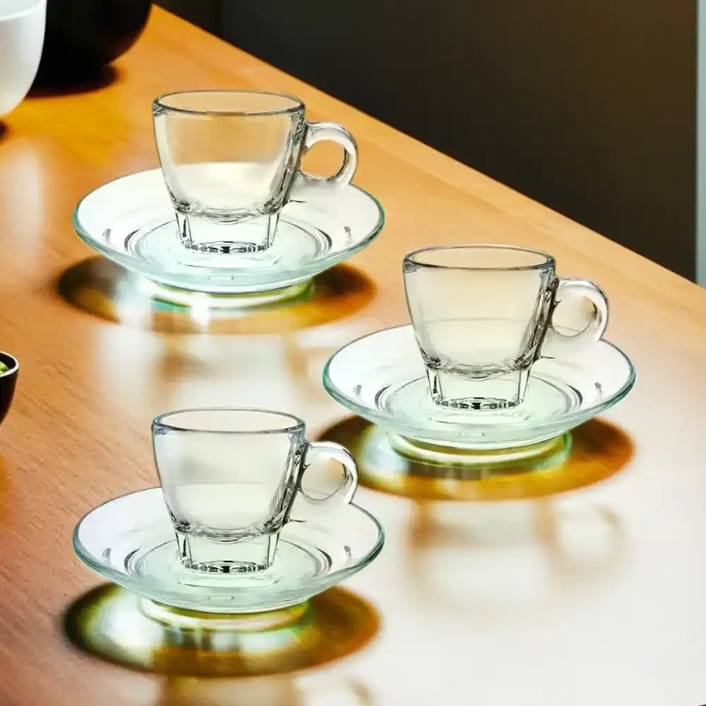Delight in the art of coffee with Ocean Cafe's Espresso Cup & Saucer, an exceptional addition tailored for the discerning tastes of hotels, restaurants, and catering services. This 70ml glassware champions a unique tapered design at its base, engineered to foster a seamless flow and vibrant crema, thereby intensifying the coffee's rich essence. Its crafted extra thickness ensures your espresso remains ideally warm, encapsulating freshness and flavor for an elevated encounter.