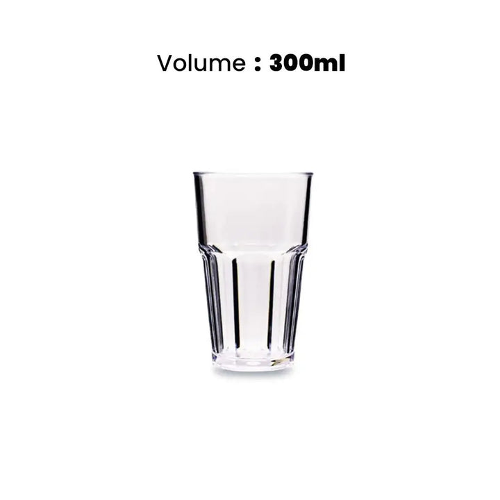 Made of strong polycarbonate, has an amazing inspired design that adds beauty to any decoration. It improves beverage presentation in hotels and restaurants thanks to its clear appearance and superb design. Its 300ml size, combined with its elegance and durability, provides beauty for an unforgettable dining experience.