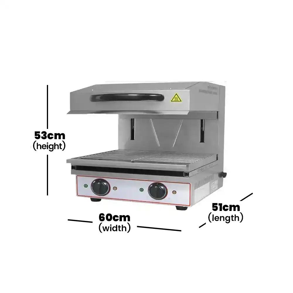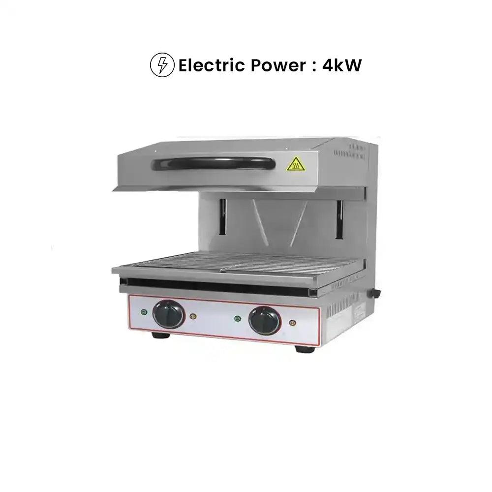 Beckers SA 600 الفولاذ المقاوم للصدأ السلمندر الكهربائي - قوة مصممة للمقاهي والفنادق والمطاعم. يتميز هذا الجهاز متعدد الاستخدامات بعنصر تسخين قوي بقدرة 4 كيلو واط، وهو يتفوق في الشوي والتحمير، مما يوفر تحكمًا دقيقًا للحصول على نتائج طهي استثنائية. تم تصميمه ليدوم طويلاً ويسهل صيانته، وأبعاده الصغيرة التي تبلغ 60 × 52 × 53 سم تجعله إضافة مثالية لأي مطبخ تجاري، مما يضمن أداءً قويًا وفعالاً.