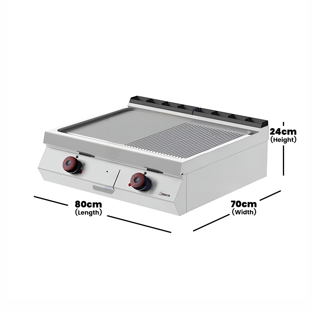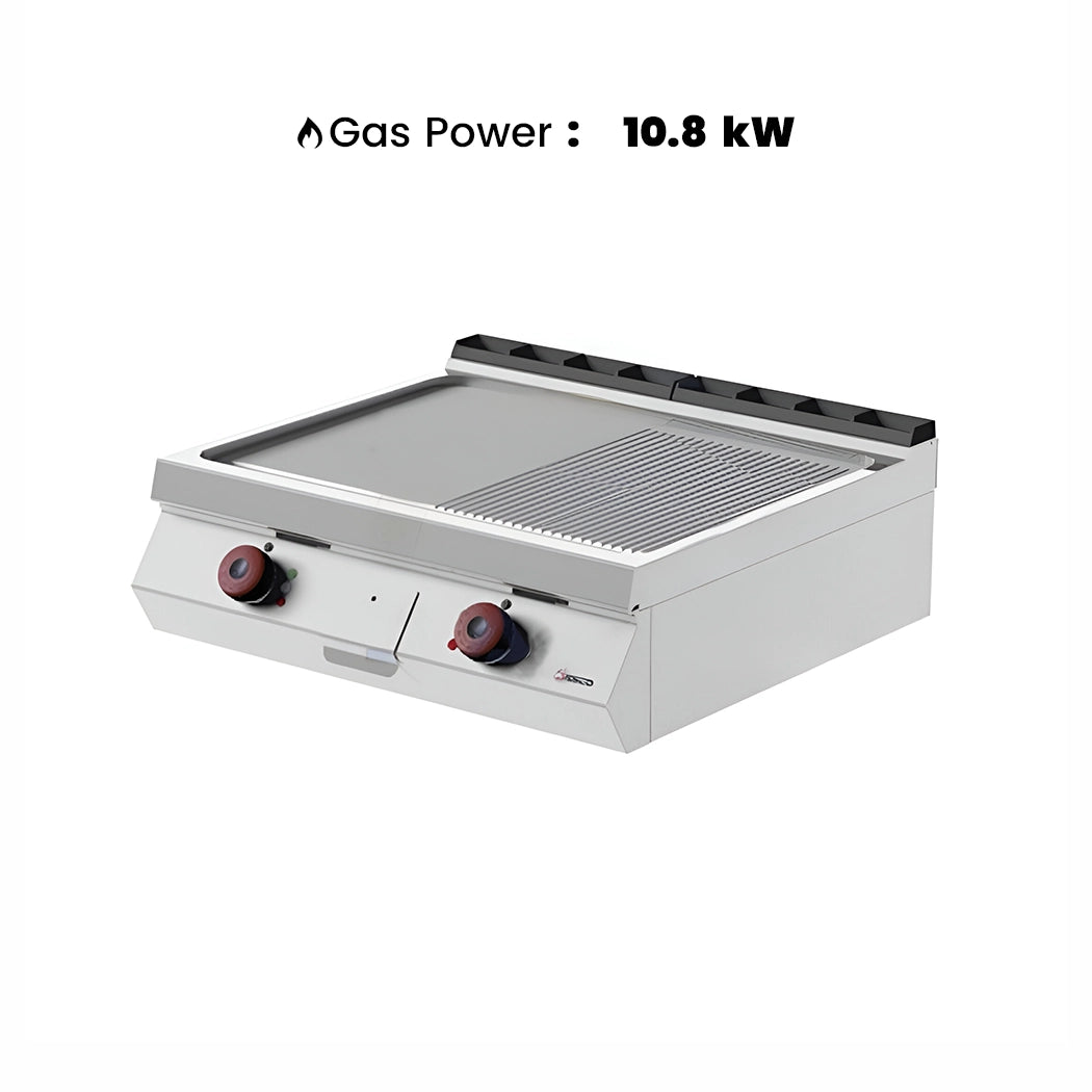 الشواية الكهربائية المصنوعة من الفولاذ المقاوم للصدأ Desco FTE72TC0 - تحفة طهي مصممة للفنادق والمطاعم. بفضل لوحة قوية تبلغ 10.8 كيلووات، ولوحة مضلعة مزدوجة، وتصميم الإصدار العلوي، تضمن هذه الشواية طهيًا دقيقًا وفعالًا ومثيرًا للإعجاب. مصنوع من الفولاذ المقاوم للصدأ السميك عالي التوصيل الحراري، ويوفر سطح طهي واسع مقاس 80 × 70 × 24 سم، مثالي للطلبات ذات الحجم الكبير. ارفع كفاءة مطبخك وأبهر ضيوفك بالميزات المبتكرة والجودة التي لا تقبل المساومة لـ Desco FTE72TC - خيار التميز في الطهي.