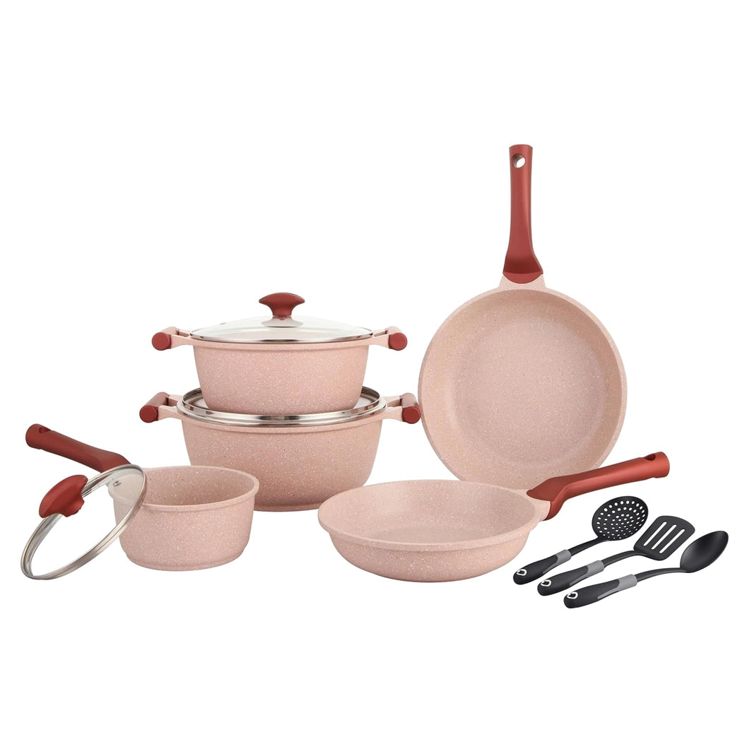 برستيج إسينشاليز، طقم أواني الطهي غير لاصقة مصنوعة من الالمنيوم، لون وردي