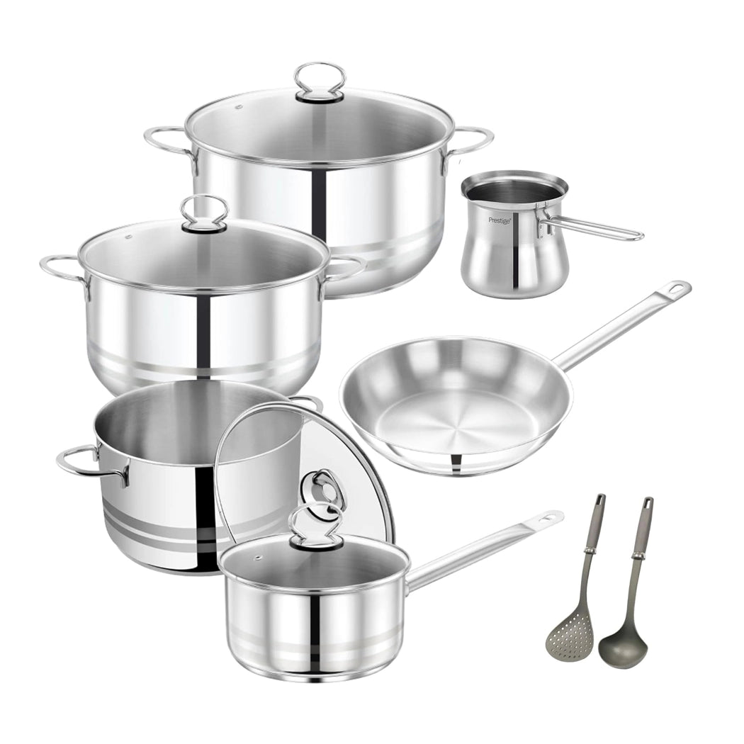 برستيج، طقم أواني الطهي مصنوعة من الفولاذ المقاوم للصدأ، طقم 12 حبة، لون فضي