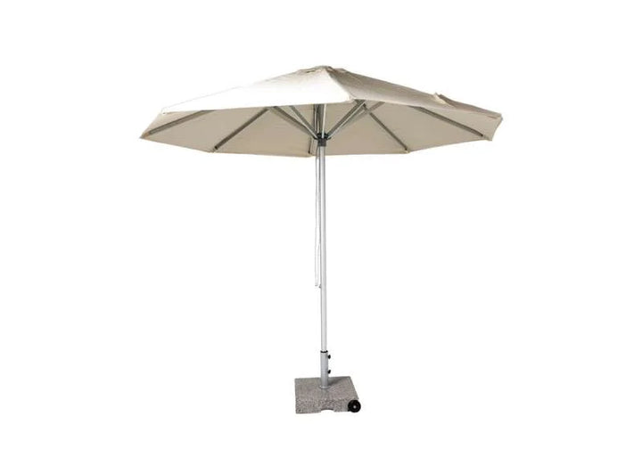 • Center-Pole Configuration: Simple, traditional setup—umbrella is sold without a base (base sold separately).