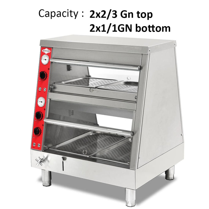 The Empero Heated Display Unit is a versatile and reliable food display solution. Designed specifically for showcasing chicken, it features thermostatic control, automatic water filling and drain system, and ergonomic design for easy use and maintenance. With its stainless steel body and powerful performance, this display unit is perfect for commercial kitchens and restaurants. It ensures food is kept warm and fresh for extended periods, making it an essential tool for foodservice operators.