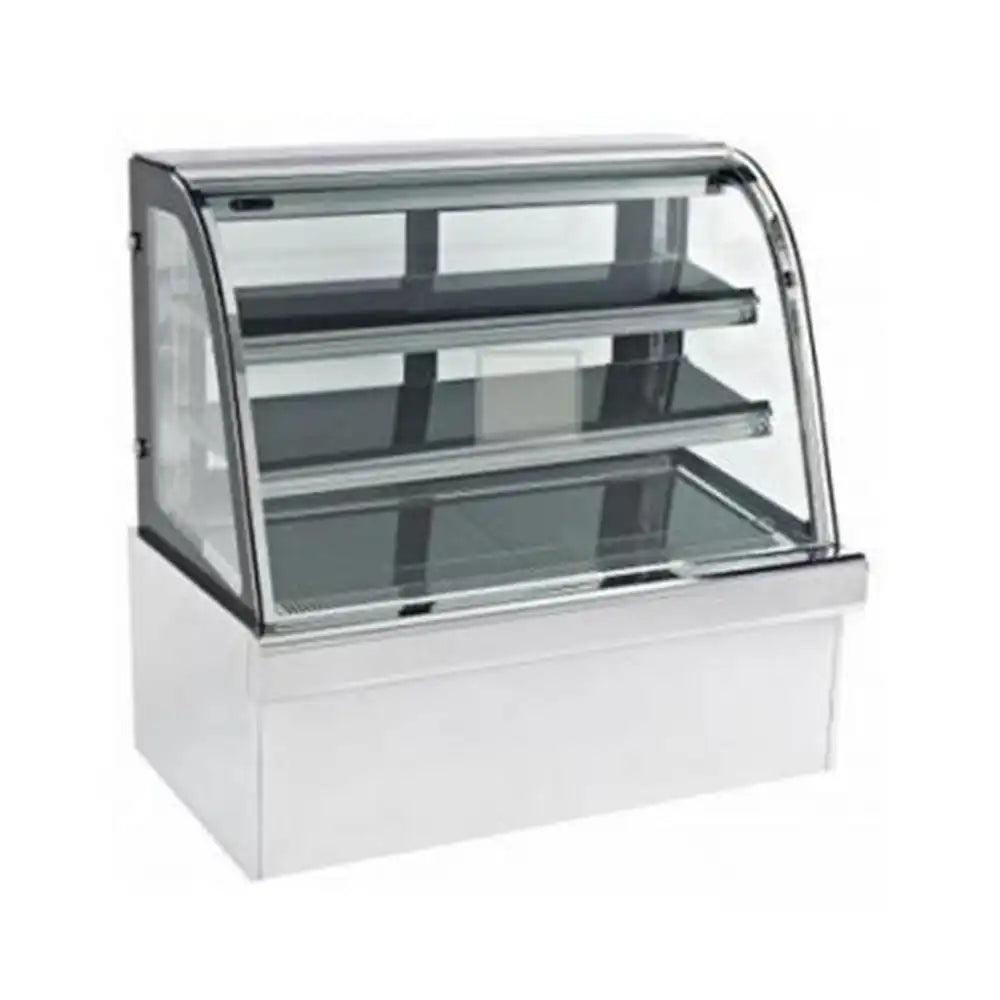 inofrigo fcs1800r3b front curved double arc cold cake display showcase with led light stainless steel mirror base 180 x 68 5 x 140 cm 3 shelves