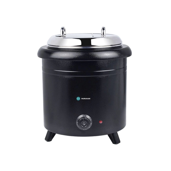 The HURAKAN HKN-FWP Soup Kettle is crucial for hotels and restaurants, as it keeps soups and prepared meals hot and ready for service. With a 10-liter tank capacity and a temperature range of 35 to 95 °C, it has a sturdy enamelled steel casing, manual filling, and runs effectively at 230 V with a maximum power usage of 0.4 kW. It weighs only 4.6 kg and is suitable for a wide range of public culinary establishments.