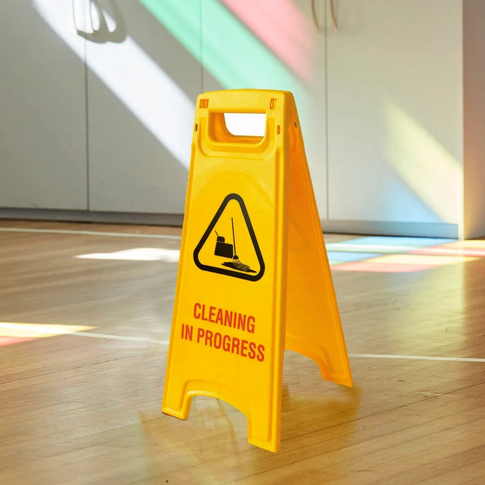 هوريكاستور، لافتة أرضية تحذيرية مزدوجة الجوانب للأرضية المبللة والتنظيف في تقدم