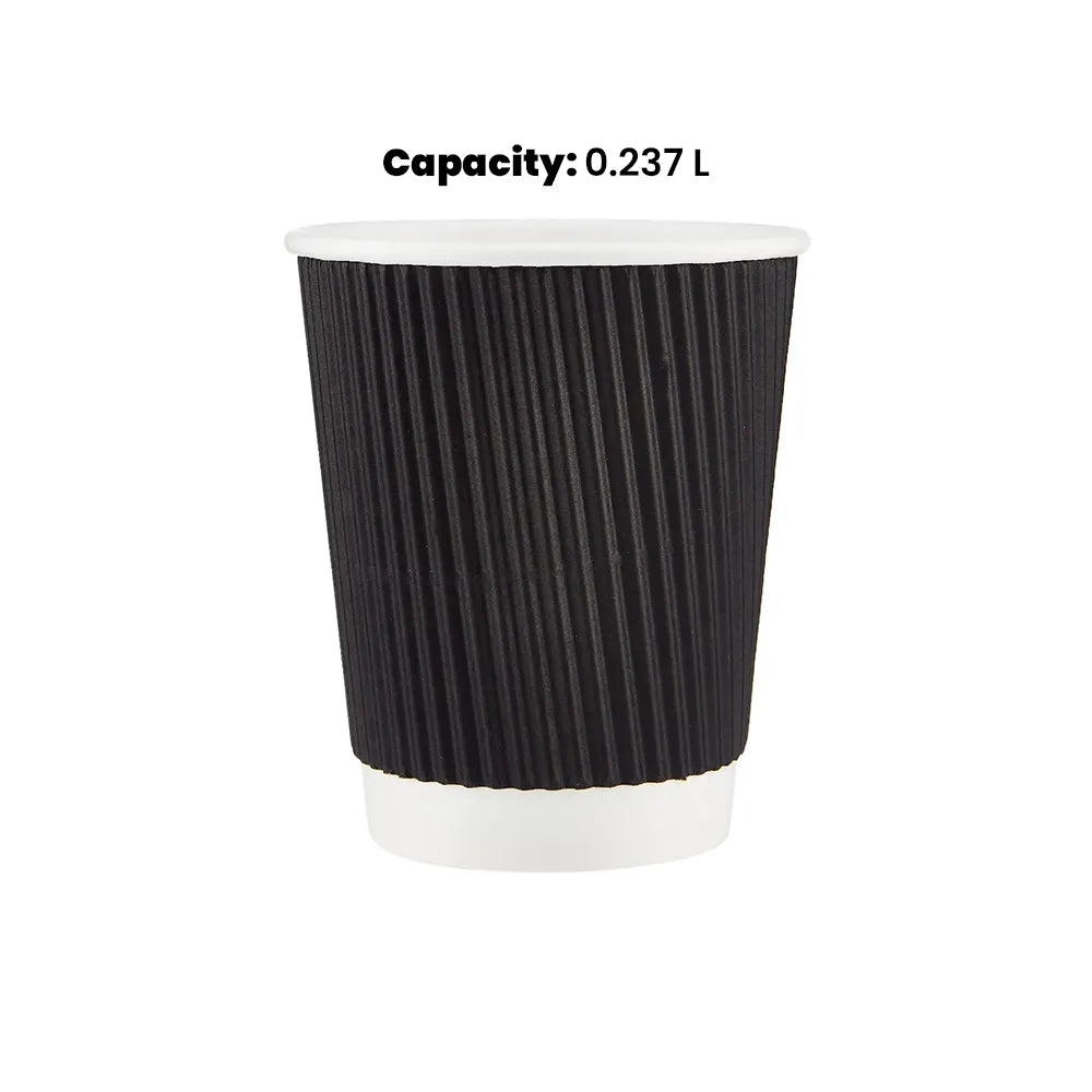 هوت باك، كوب ورقي أسود بتصميم متموج، وسعة 237 مل، 500 حبة