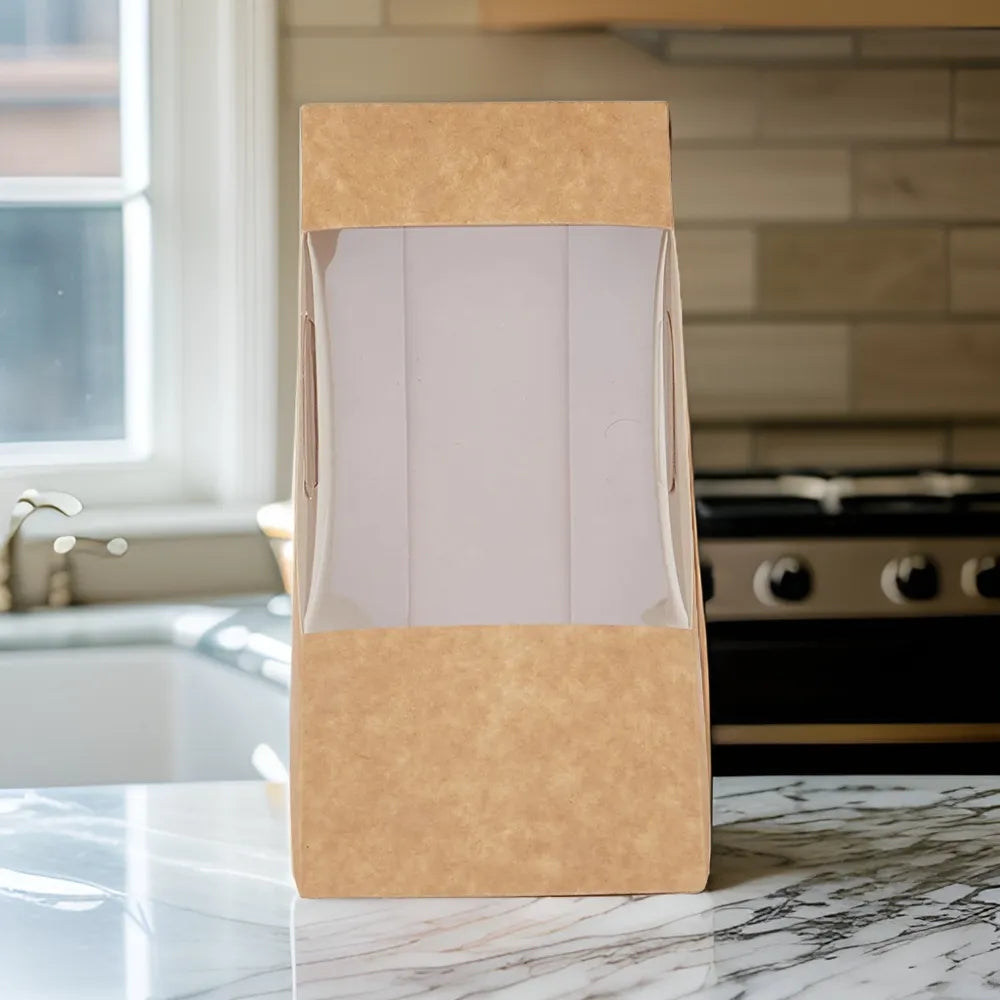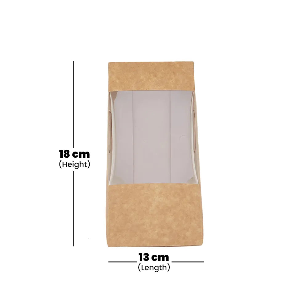 The Hotpack Kraft Sandwich Wedge Box with Window is a convenient and eco-friendly solution for packaging sandwiches. Its window allows for easy viewing of the contents, while the sturdy Kraft paper provides durability. This box is perfect for cafes, delis, and food trucks looking to showcase their sandwiches attractively. Its eco-friendly material also appeals to environmentally conscious customers.