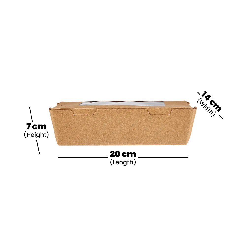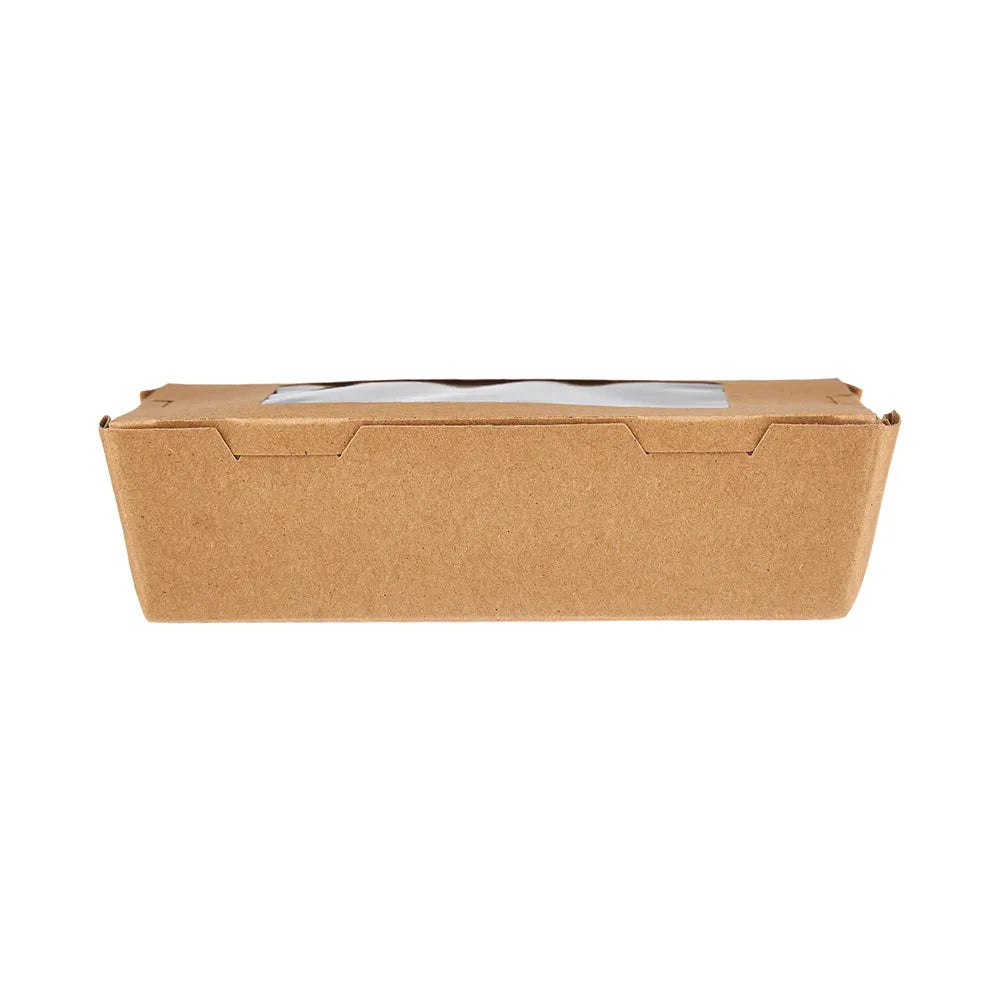 The Hotpack Kraft Lunch Box with Window offers a sustainable and convenient solution for packaging meals. Its natural color and clear window provide a glimpse of the contents. The box is sturdy, ensuring food remains secure during transport. It is ideal for food delivery services and takeout restaurants, showcasing the meal inside while keeping it fresh.