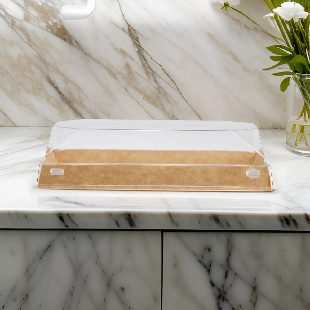 • مصنوعة بقاعدة ورقية متينة وغطاء بلاستيكي شفاف للحفاظ على الطعام طازجًا وجميلاً