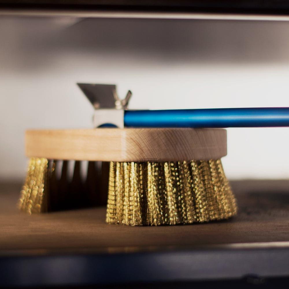 GI Metal AC-SPT Round Rotating Head Oven Brush 14 X 17 X 7 CM Brass Bristles and 150 CM Handle - HorecaStore