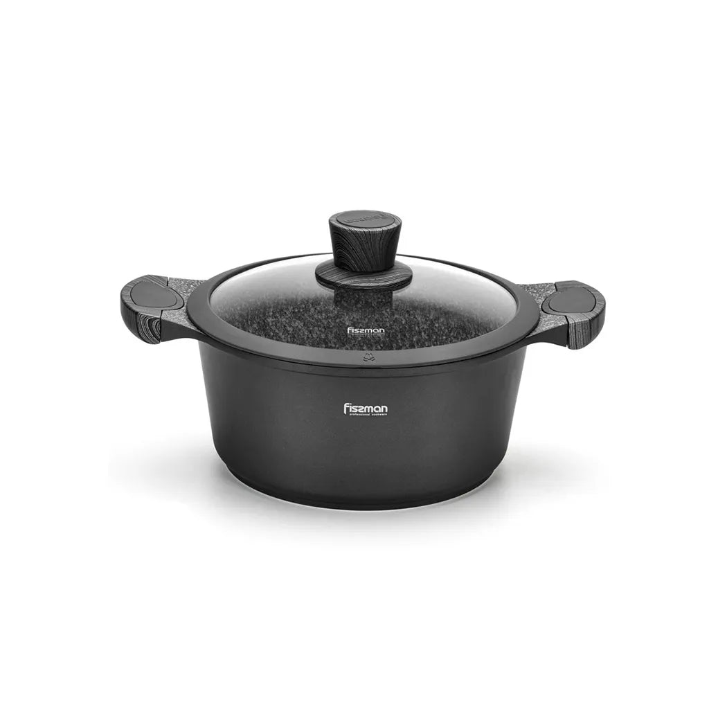 قدر مرق من ألومنيوم غير لاصق مع غطاء زجاجي وقاعدة تحريضية باللون الأسود/الشفاف، سعة 4.3 لتر ومقاس 24 × 11.5 سم