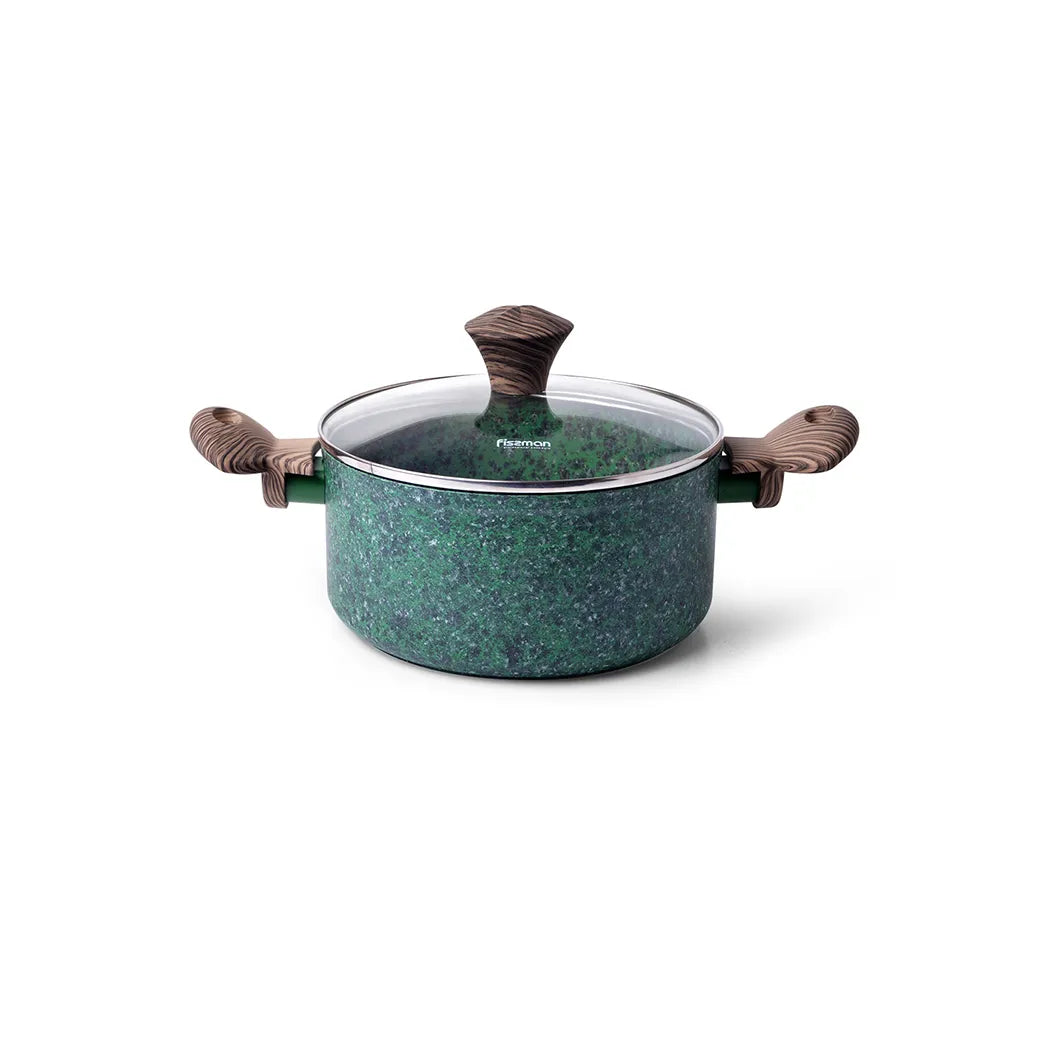 قدر مرق من الألومنيوم غير لاصق من سلسلة الملاكيت مع غطاء زجاجي وقاعدة تحريضية، سعة 4.7 لتر ومقاس 24 × 10.9 سم