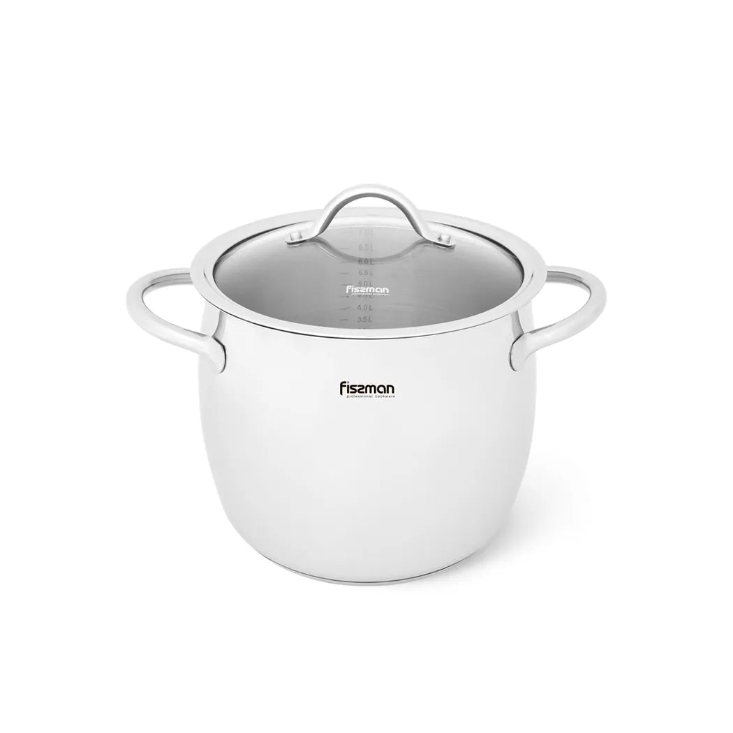 قدر مرق من الفولاذ المقاوم للصدأ مع غطاء زجاجي وقاعدة حثية باللون الفضي، سعة 7.7 لتر ومقاس 22 × 18.7 سم