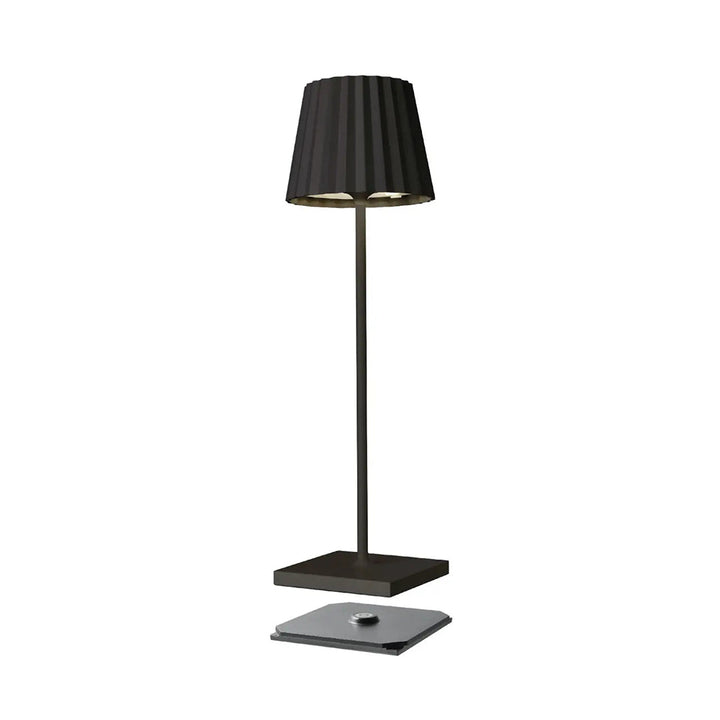تروول 2.0 - مصباح الطاولة الخارجي مع الظل المميز المجعد. هذا المصباح الذي يعمل بالبطارية يبعث ضوءه لأعلى ولأسفل. لذا تستفيد من جهة من الضوء المباشر في المنطقة ومن جهة أخرى من الإضاءة غير المباشرة التي تساهم في خلق جو مريح.