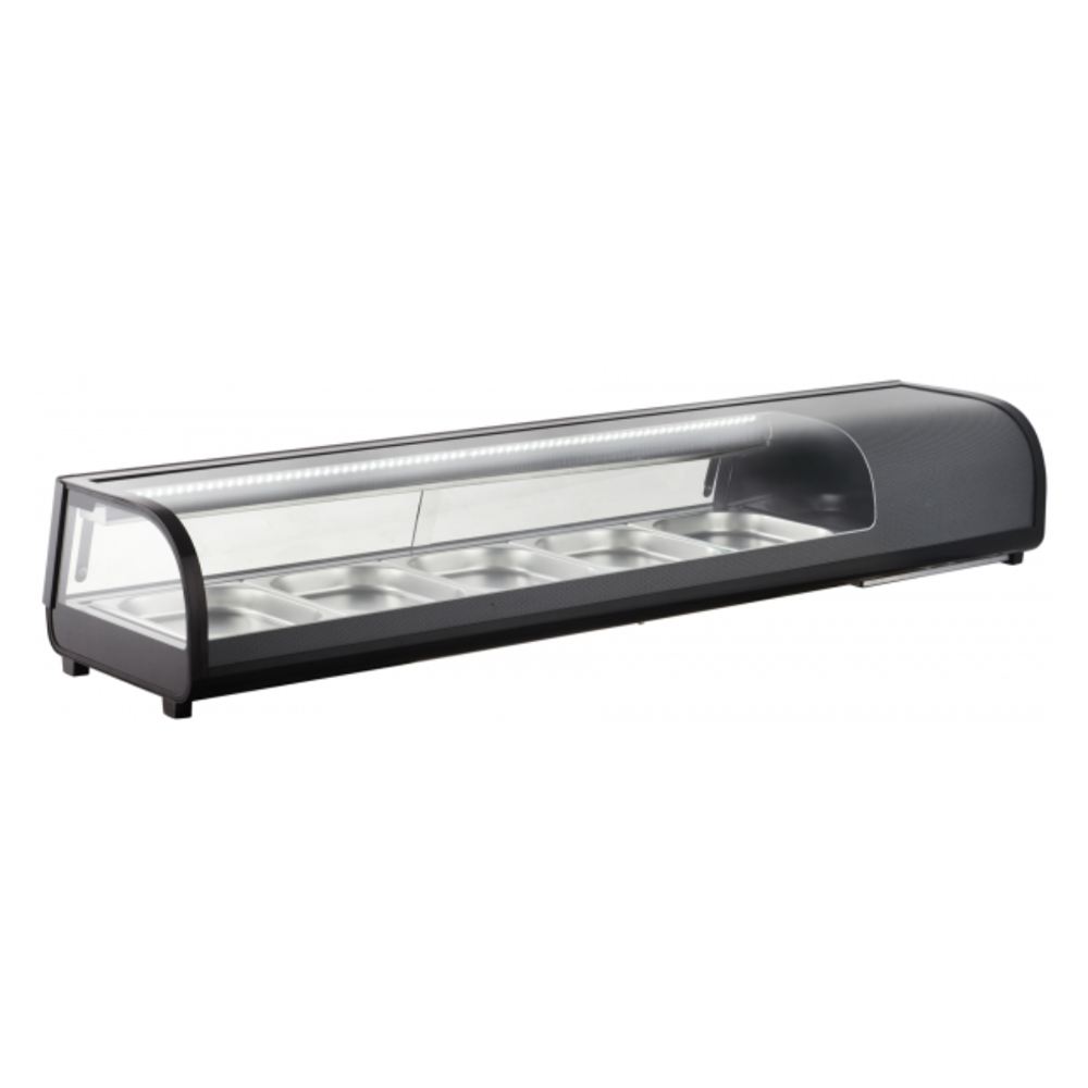 تحتفظ الوحدة بنطاق درجة حرارة مثالي من 0°C إلى 12°C، وهو مثالي لتخزين السوشي والساشيمي والأطباق القابلة للتلف الأخرى، مما يضمن بقاء الطعام طازجًا أثناء العرض.