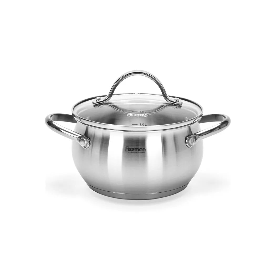 • قدر مرق عالي الجودة مع غطاء زجاجي من سلسلة مارتينيز من فيسمان.