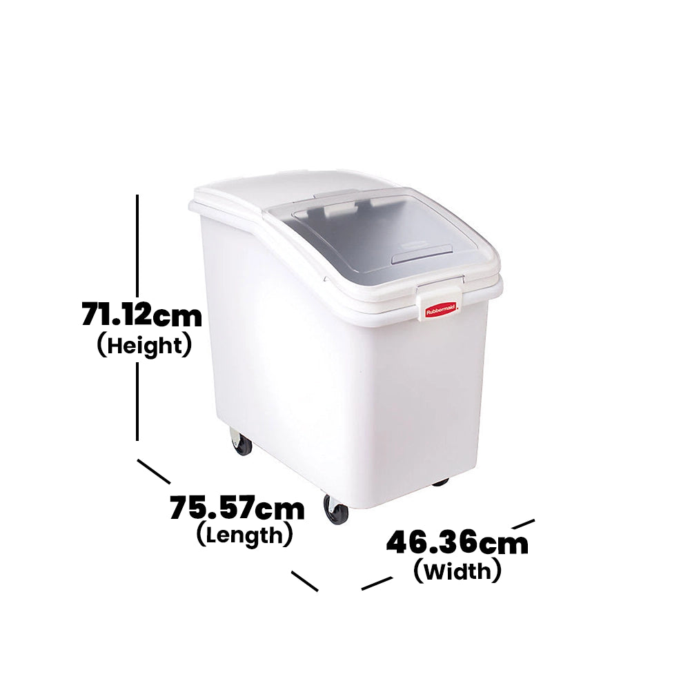 Designed specifically for the stringent standards of the hospitality industry, this Rubbermaid 116-liter Ingredient Bin boasts a heuristic blend of form and function. It's crafted from durable polypropylene and boasts a sleek white hue. Ideal for hotels, restaurants, and catering businesses, this bin features a non-invasive scoop hook system, a visibility-increasing clear window on the lid, and resilient casters for effortless mobility. It's a model of efficiency and hygiene with its secure sealing clasps and easy-to-clean surfaces, precisely meeting NSF certification and HACCP compliance standards.