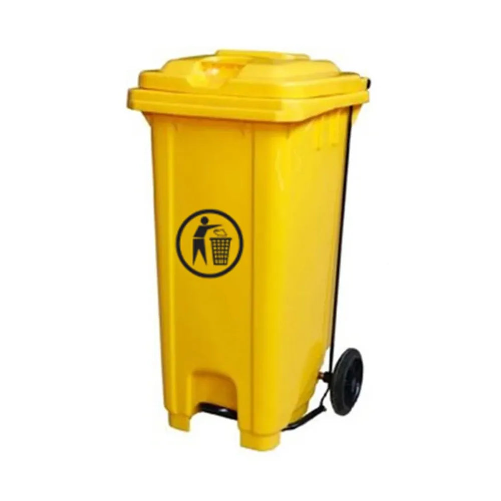 هوريكاستورCNC120 سلة قمامة بلاستيكية صفراء بعجلة ودواسة مركزية سعة 120 لترًا