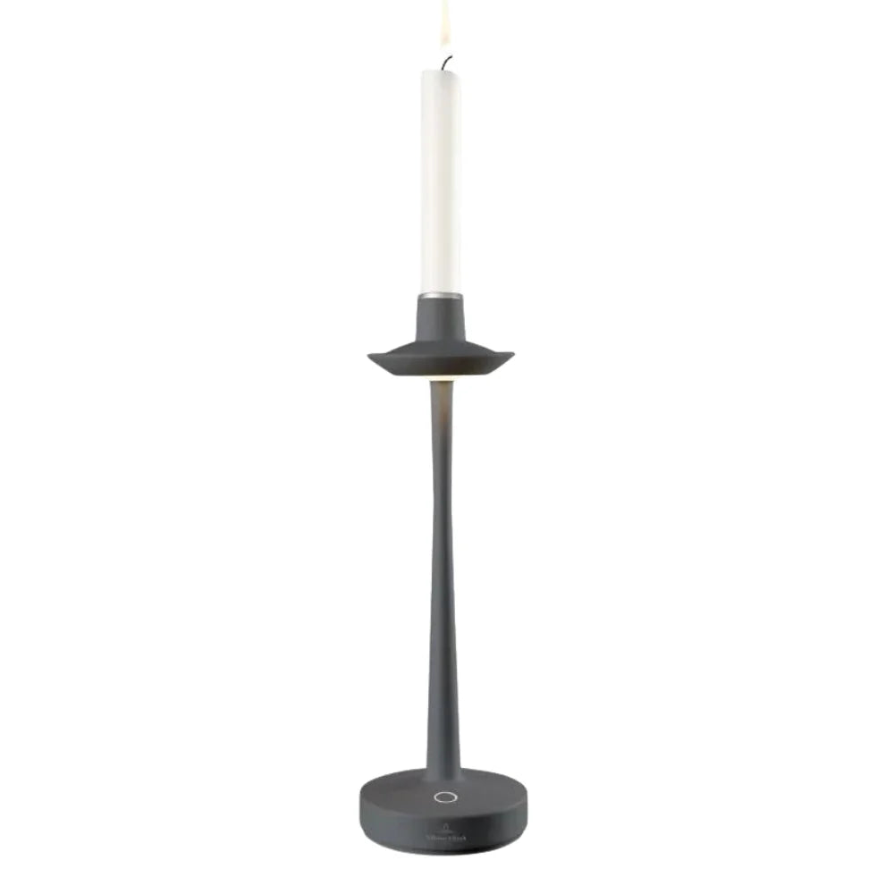 مصباح البطارية المصقول من آرهوس من فيليروي وبوش هو مزيج من مصباح الطاولة وحامل الشموع لشمعة ستيك.