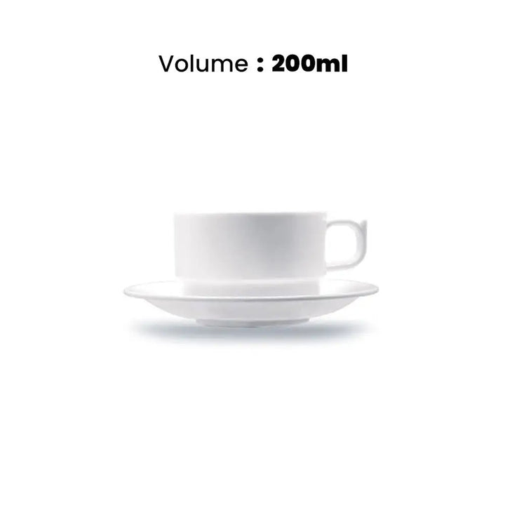 Tribeca Polycarbonate White Cup & Saucer 200 ml, BOX QUANTITY 72 PCS