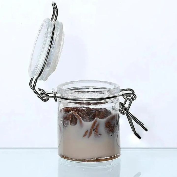وعاء بمشبك لحفظ التوابل سعة 50 مل مع مشبك سلكي لحفظ الغلق الشفاف مع غطاء مشبك محكم الغلق، شفاف