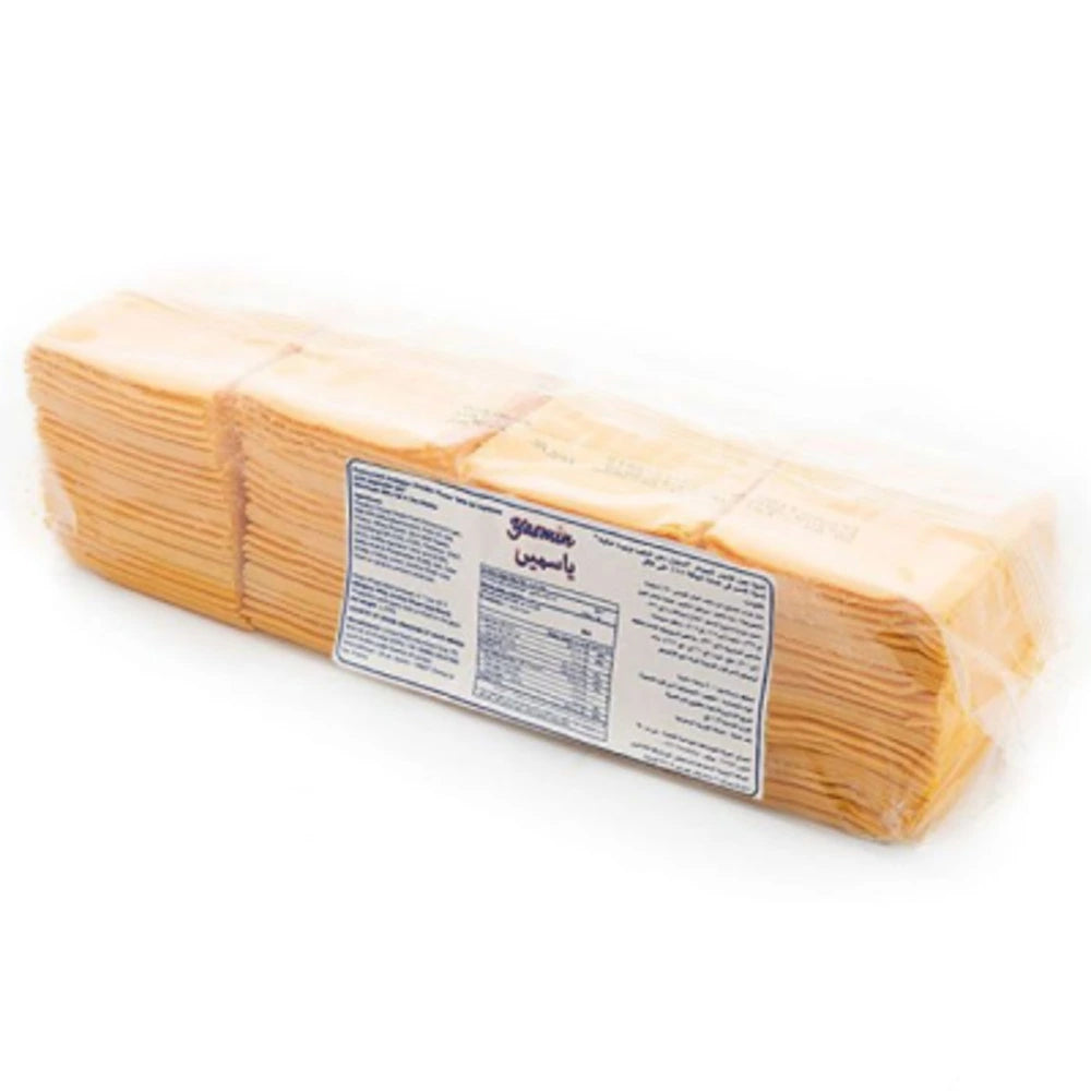 Yasmin's Processed American Cheddar Cheese in Slices, made in KSA, ensures freshness and quality.