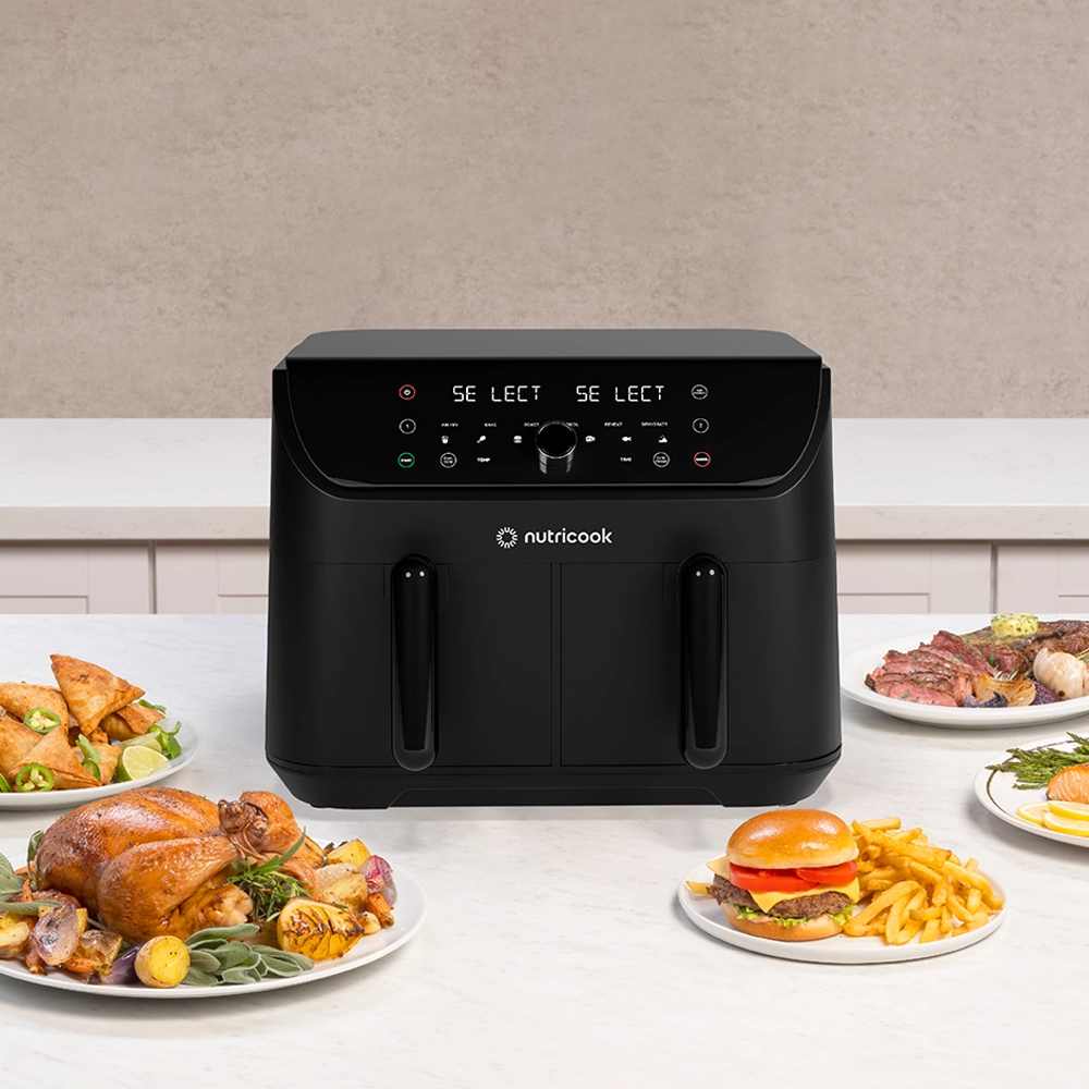 • يتضمن ميزة الطهي المزدوج لتكرار إعدادات الطهي عبر السلال مما يسمح بزيادة أحجام التقديم والتحضير السريع