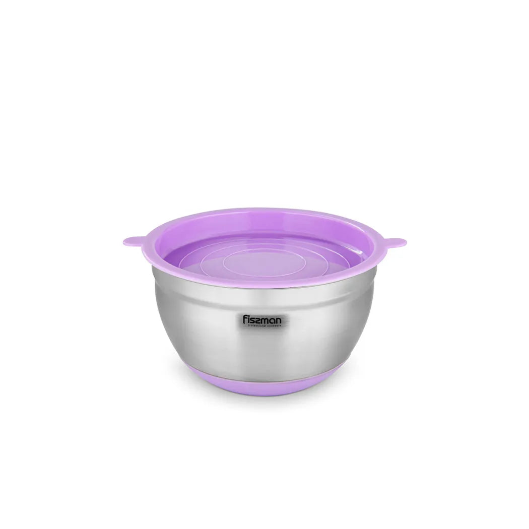 وعاء خلط مصنوع من الفولاذ المقاوم للصدأ مع غطاء وقاعدة سيليكون مضادة للانزلاق، باللون الأرجواني/الفضي، سعة 1.5 لتر.