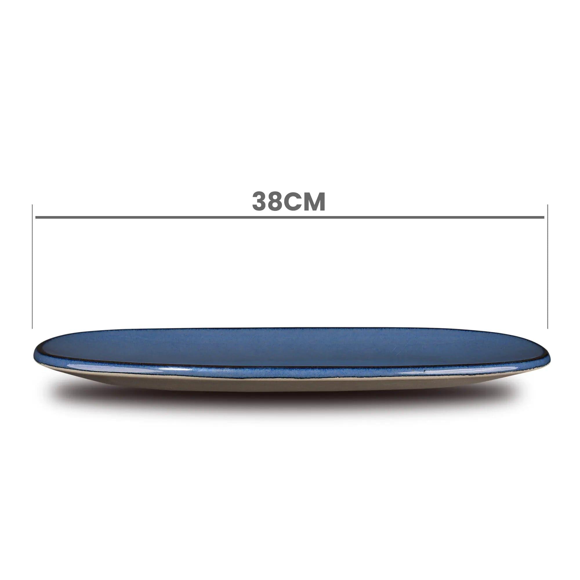 طبق دون بيليني كرافتستون مقاس 15 بوصة/38 سم من البورسلين الأزرق المستطيل