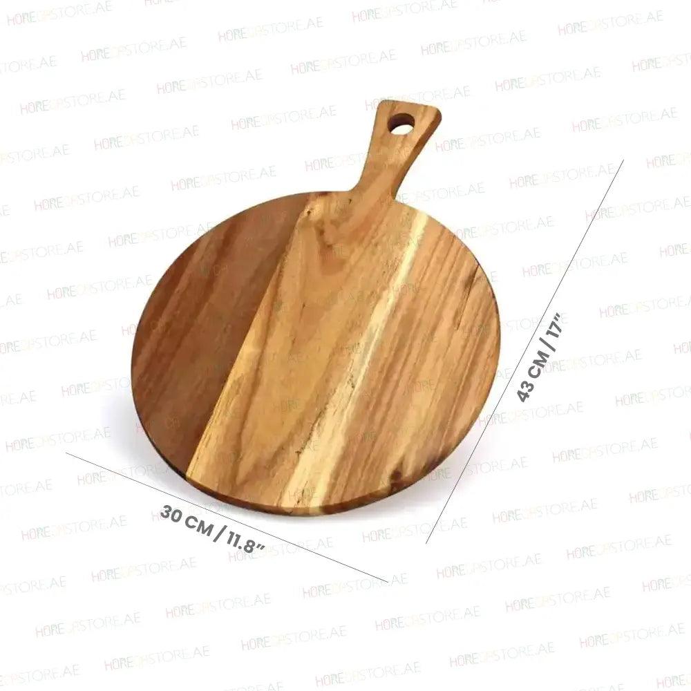 لافا، لوح تقديم وتقطيع بمقبض، دائري الشكل، مصنوع من خشب، قطر 30 × طول 43 سم