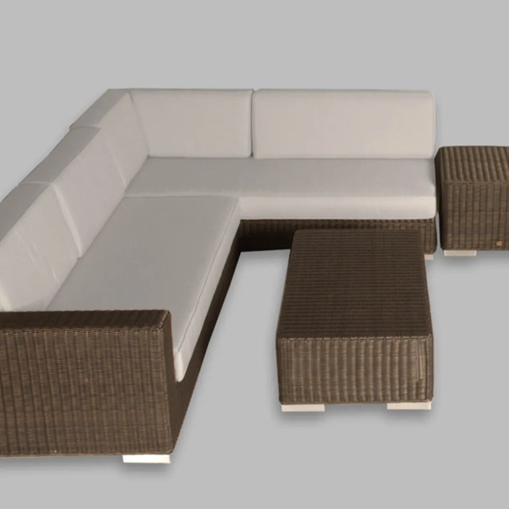 Ambar Tahiti Modular sofas are built to last, with added protection and comfort in every detail. They're perfect for any style, from Scandinavian to Contemporary. The powder-coated aluminum frame and synthetic rattan covering can withstand all weather conditions, while the stain-resistant fabric ensures years of beauty. Enjoy durability and comfort in your outdoor space with this versatile and long-lasting sofa. It's perfect for relaxing and making memories with family and friends.