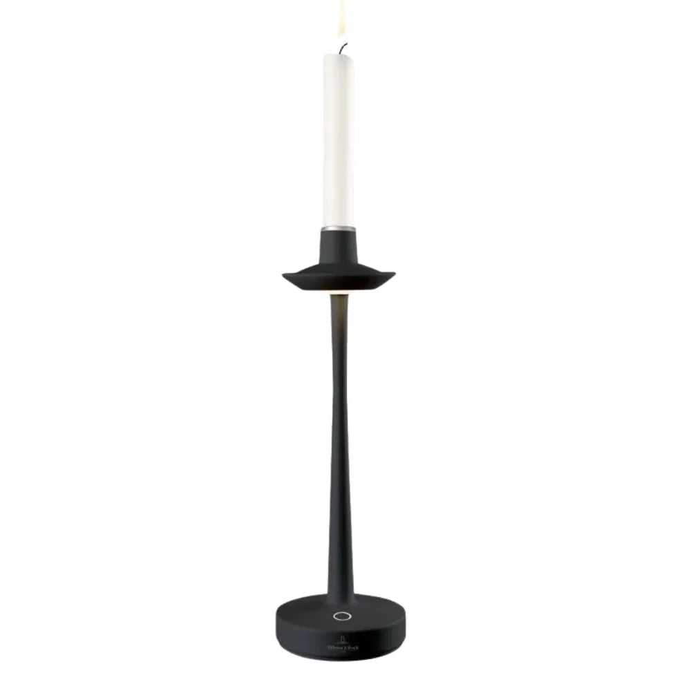 مصباح البطارية المصقول من آرهوس من فيليروي وبوش هو مزيج من مصباح الطاولة وحامل الشموع لشمعة ستيك.
