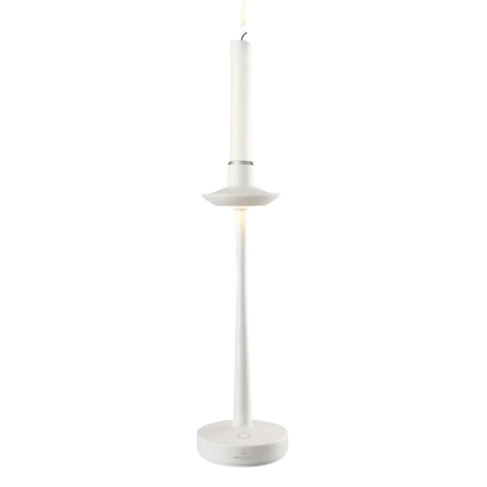 مصباح البطارية المصقول من آرهوس من فيليروي وبوش هو مزيج من مصباح الطاولة وحامل الشموع لشمعة ستيك.