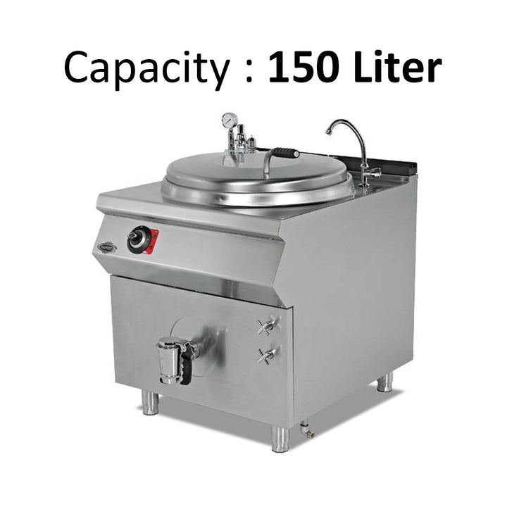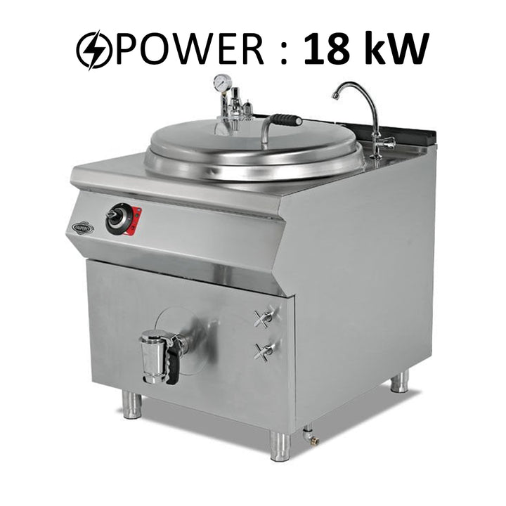 • Features a large capacity of 150 liters and a powerful 18 kW electric motor for rapid boiling.