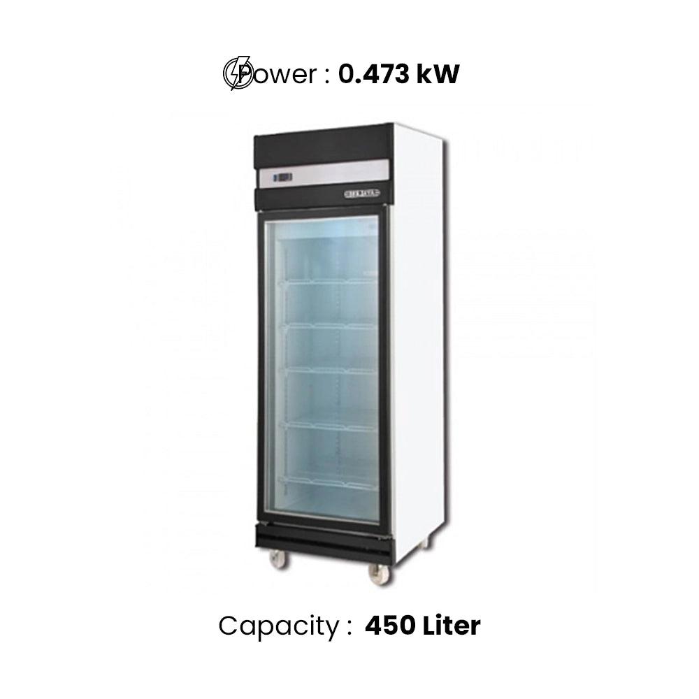 Berjaya 1D/DC-BH-1-G Electric Upright Single Glass Door Chiller Blower System 450 L, Power 473W, 63.5 X 71 X 206 cm - HorecaStore