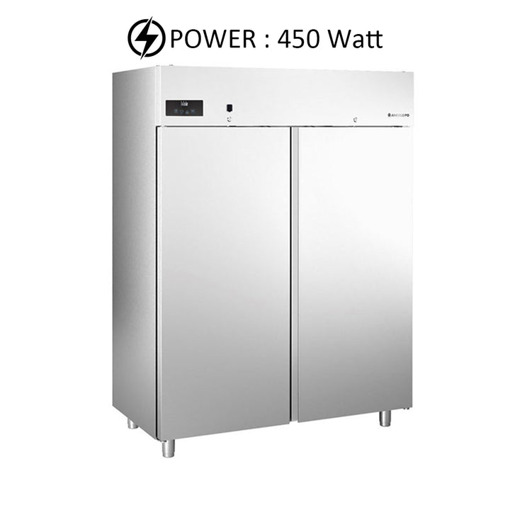 The Ilsa Upright Refrigerator is a high-performance appliance designed for commercial kitchens, restaurants, and food service operations. Constructed with stainless steel AISI 304 and 60 mm insulation, it provides durable and efficient cooling. With a spacious 1400 liter capacity and a temperature range of 0°C to +10°C, it's ideal for storing perishable items, ingredients, and prepared foods. Features like automatic defrost, digital display, and compatibility with GN 2/1 trays make it a convenient and reliable choice. Powered by a 230 V - 450 W motor and using environmentally friendly refrigerant R290, it's a top-quality solution for professional food storage needs. Inspired by Italian design and engineering, it's a trusted choice for professionals in the food industry.