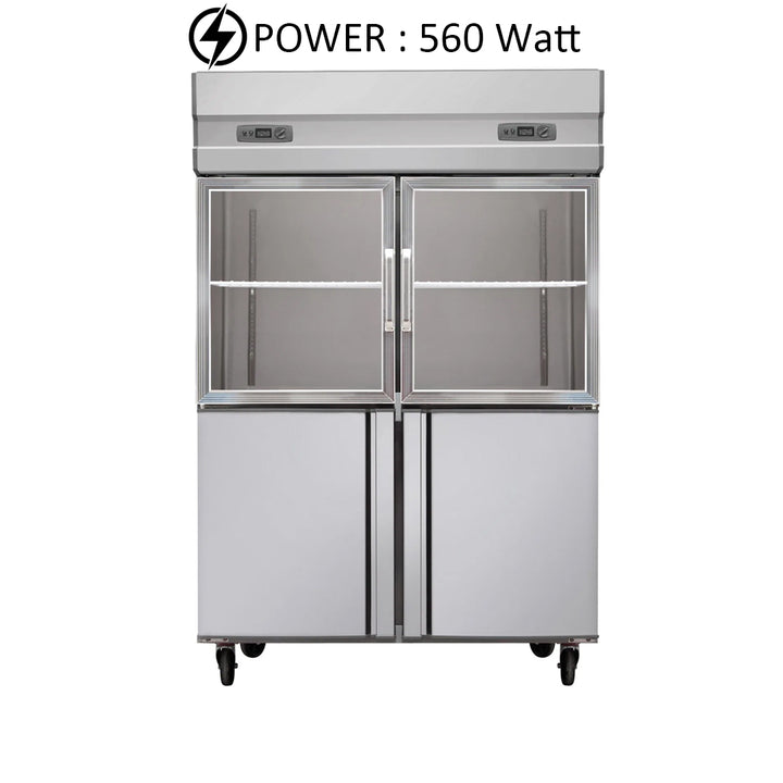 • Features 2/3 glass and 1/3 stainless steel doors (304 S.S.), stainless steel interior and exterior, and LED light for easy visibility.