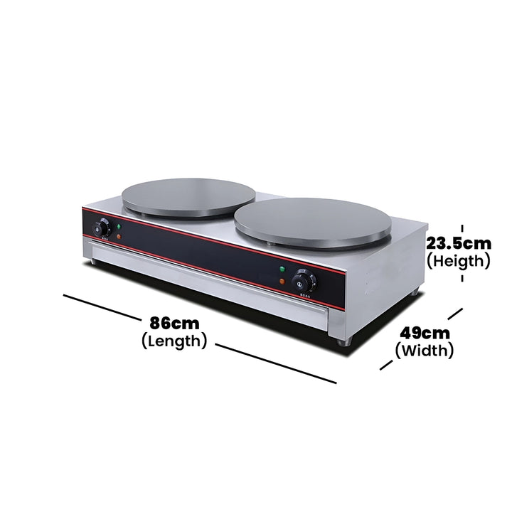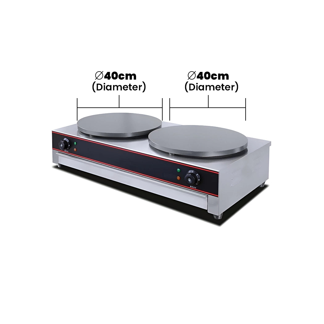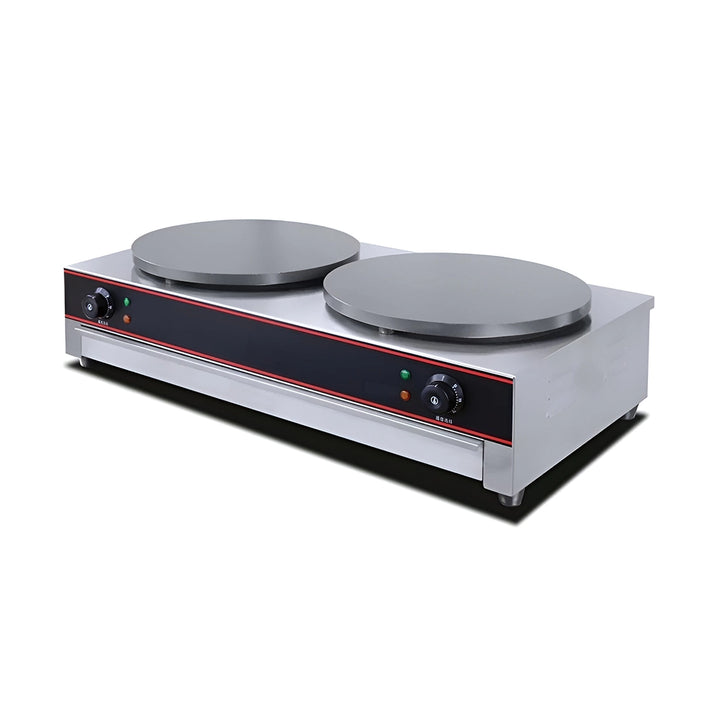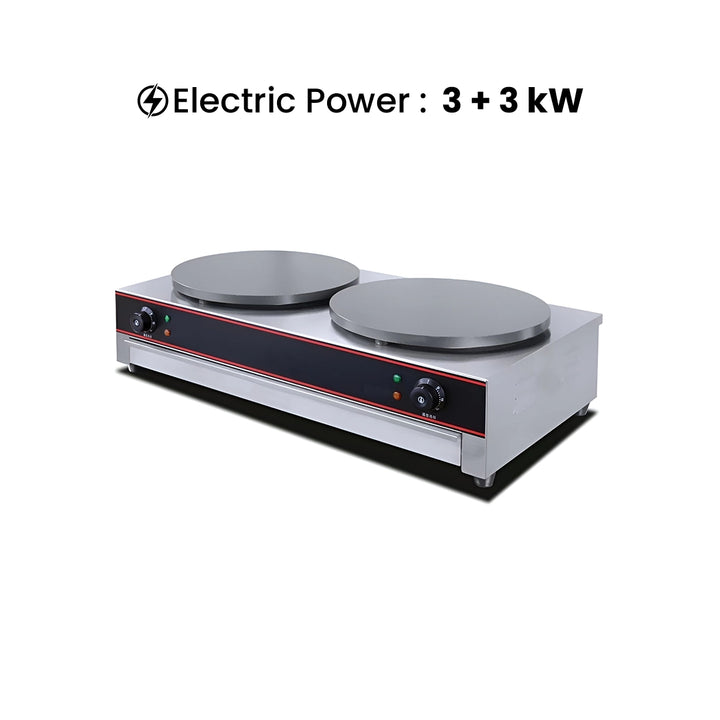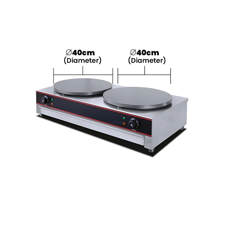 • Features two hot plates with a diameter of 40 cm for cooking crepes simultaneously.