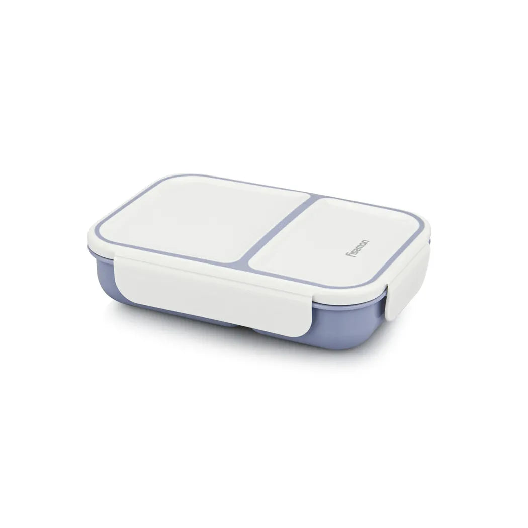 • صندوق غداء مكون من جزأين باللونين الأرجواني والرمادي.