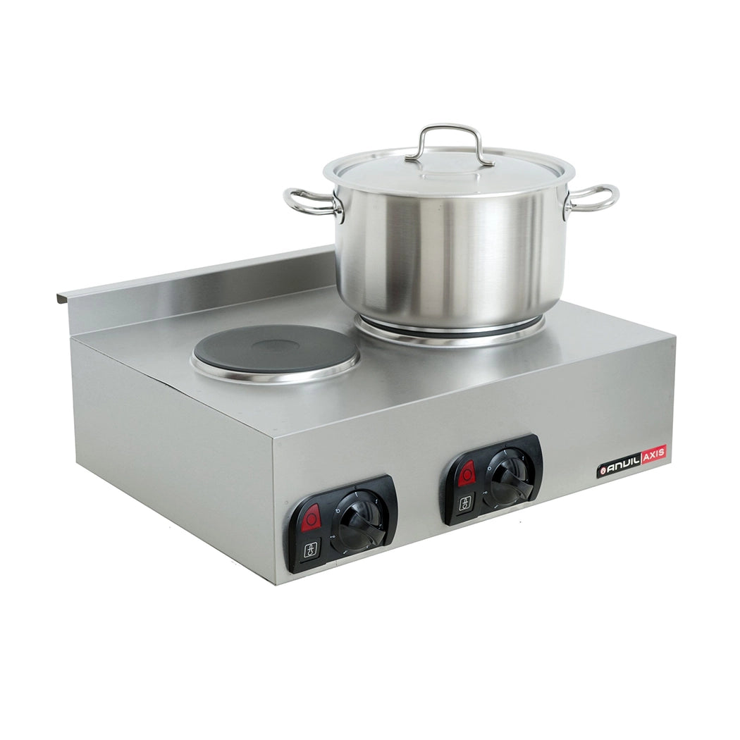 Anvil Electric Double Stove Top 3.2 kW offers versatile cooking with two independent heating zones. Its rapid heat-up, precise temperature control, and durable stainless steel construction make it ideal for busy commercial kitchens. The compact design and splash guard ensure safety and easy cleaning. Perfect for simmering, boiling, or frying, this stove top is a reliable addition to your kitchen equipment.