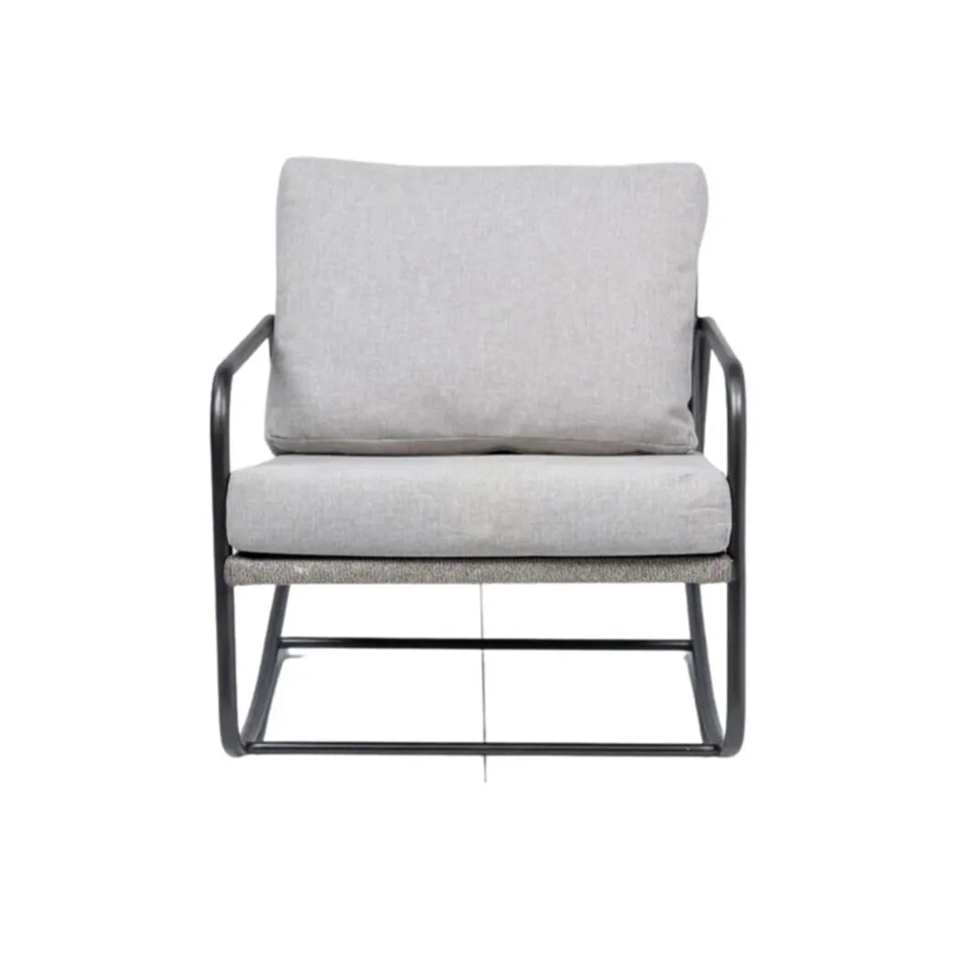 • Powder coated aluminum frame covered in rope fiber and cushions made of synthetic fiber to withstand all weather conditions.