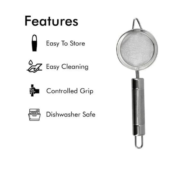 • Fine mesh ensures precise straining, sifting of tea, flour, spices, and more