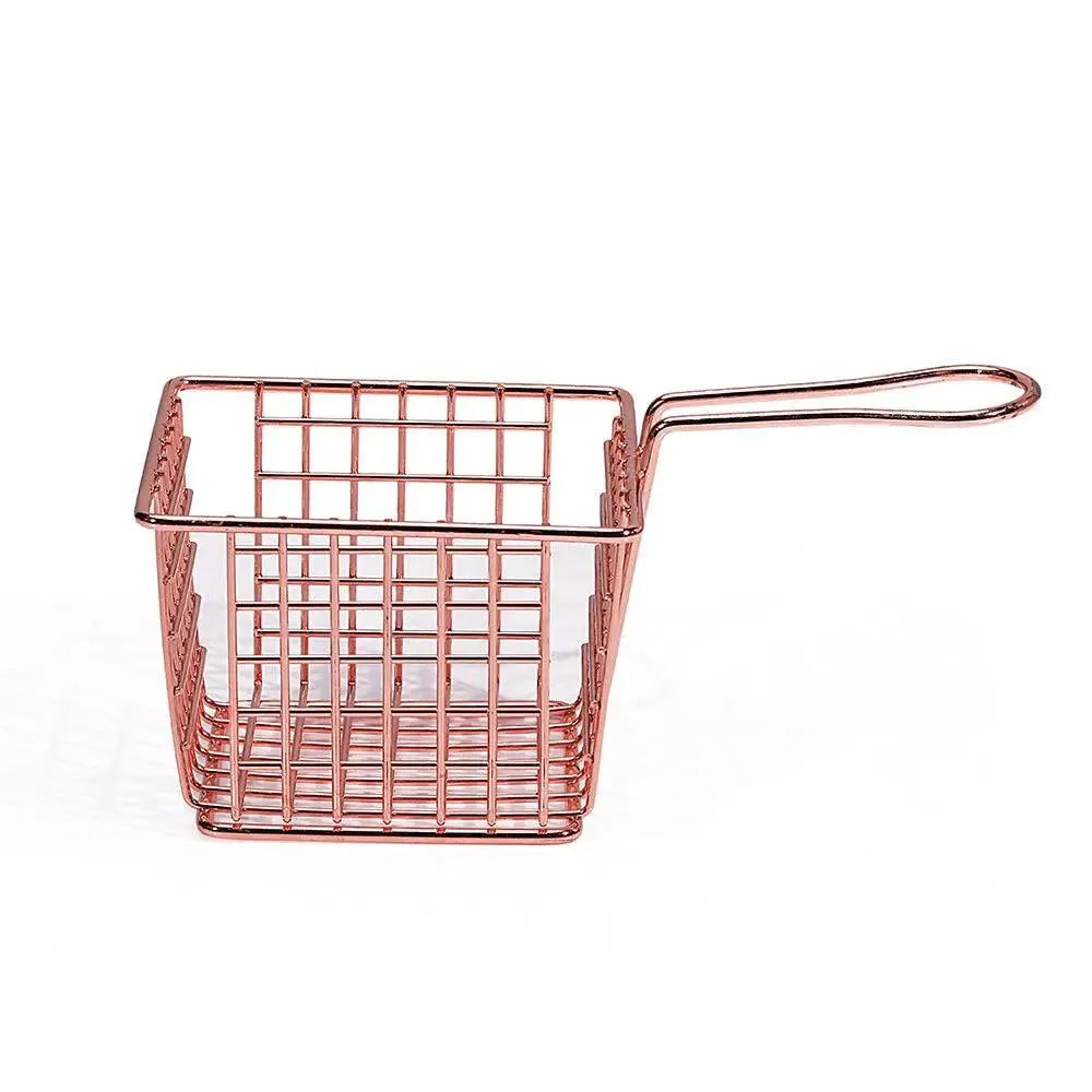 Wundermaxx Carbon Metal Wire Square Frying Basket Rose Gold 18*10*7.5cm