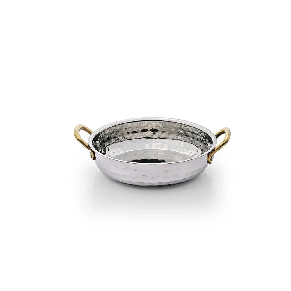 Elevate your culinary experience with our Stainless Steel Hammered Finish Heavy Saucepan. This medium-sized 600ml saucepan, featuring an exquisite hammered finish and two side brass handles, is both stylish and durable. It's the perfect addition to your kitchen, offering quality craftsmanship and the versatility you need to create delicious meals with confidence. Upgrade your cookware collection and cook like a pro with this essential saucepan.