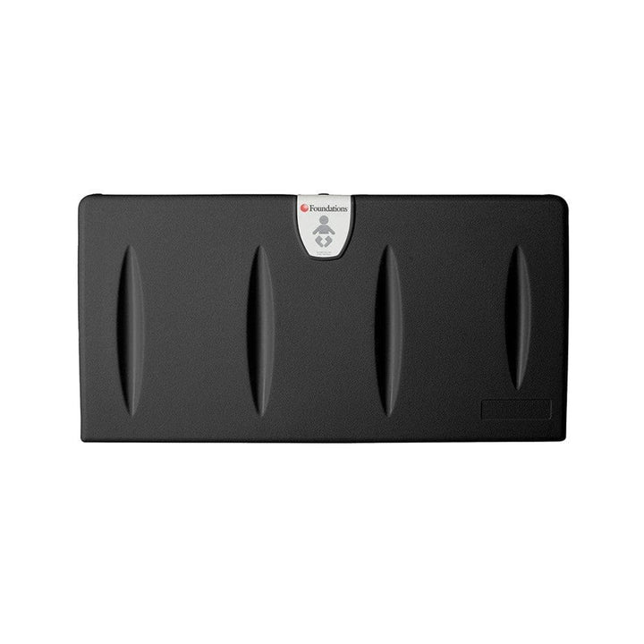 The Foundations Classic Horizontal Wall-Mounted Baby Changing Station in stylish black. This space-saving diaper changing table offers durability, safety straps, and convenience to your guests. With user-friendly design and hygienic features, it's perfect for restaurants, hotels, and more. Enhance your establishment with this sleek, versatile, and essential diaper changing solution. Order now for a modern, family-friendly environment.