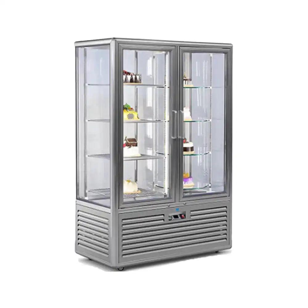 fg828l2 a1 dessert showcase four sided glass door rotary cake display cabinet upright refrigerator painted steel coating 124 5 x 65 x 185 cm